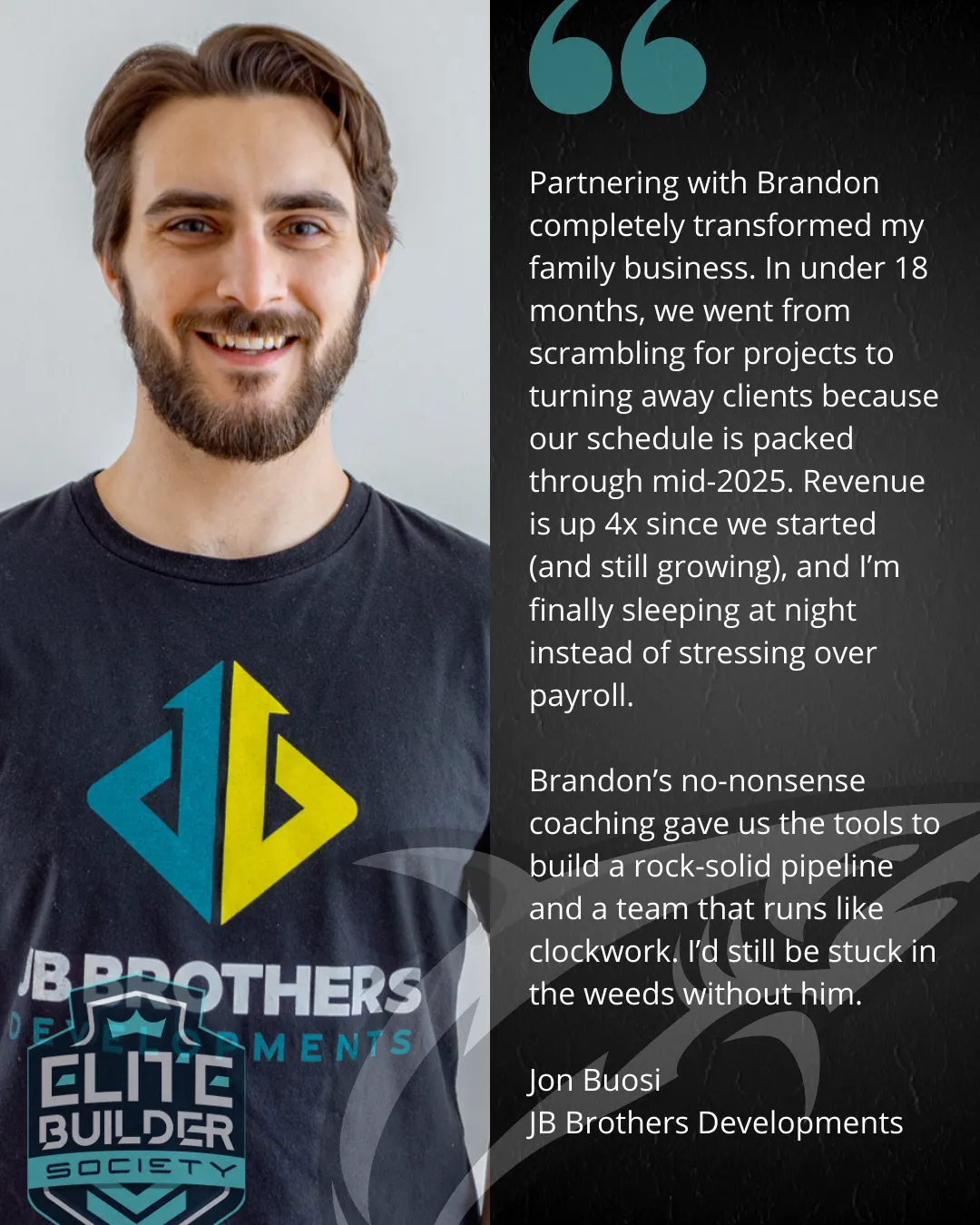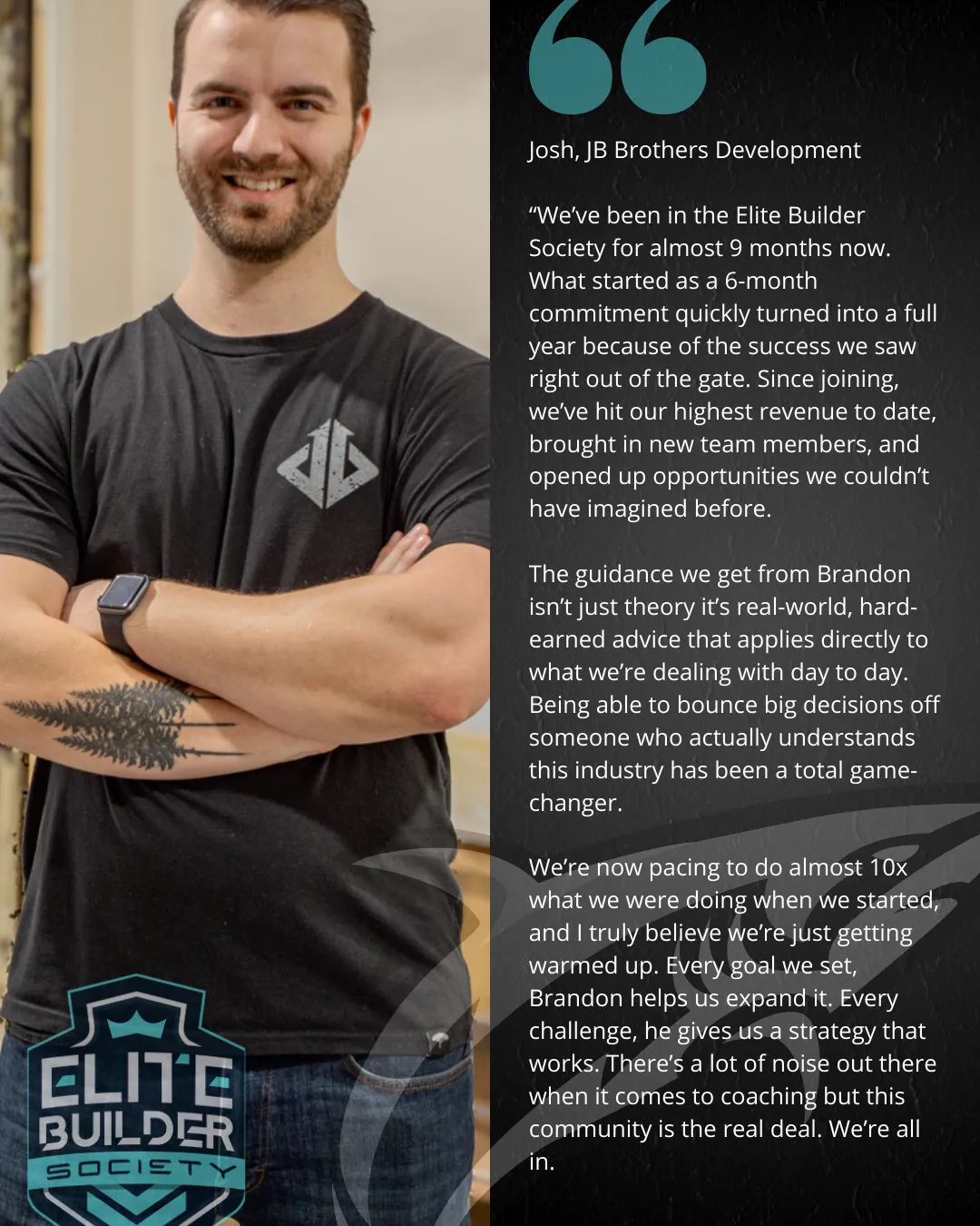 Contractor coach and founder of Elite Builder Society. Brandon helps contractors build confidence, make better decisions, and take control of their business in any market.